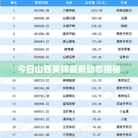 山西美錦能源產(chǎn)業(yè)頻頻傳來好消息,成為業(yè)界矚目的焦點(diǎn),隨著其在煤炭、化工等領(lǐng)域的不斷拓展和創(chuàng)新,山西美錦正逐步崛起為中國能源行業(yè)的重要力量,本文將為您詳細(xì)介紹山西美錦的最新消息和發(fā)展動(dòng)態(tài)。